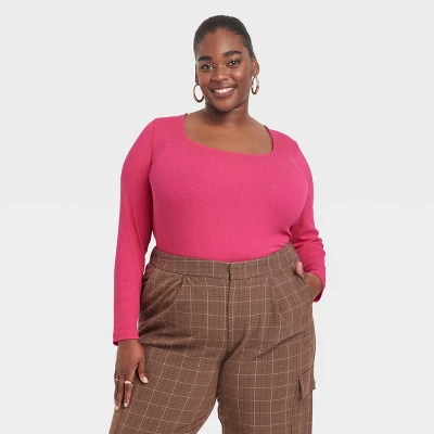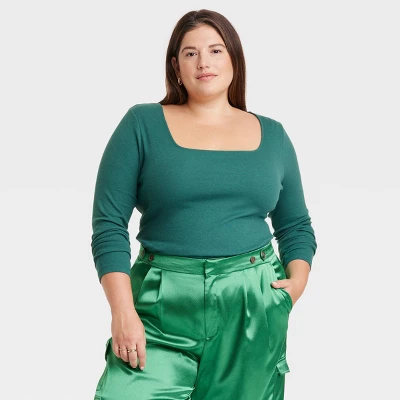 Update your collection of tops with this Long-Sleeve Slim-Fit T-Shirt from A New Day™. This long-sleeve T-shirt in a solid color features a breezy square neck, a ribbed construction and a slim silhouette for a fitted look. The casual tee is made from soft, stretchy cotton-blend material for a comfortable fit, and is ideal for layering or wearing on its own. Wear with your choice of bottoms to create a range of versatile styles.